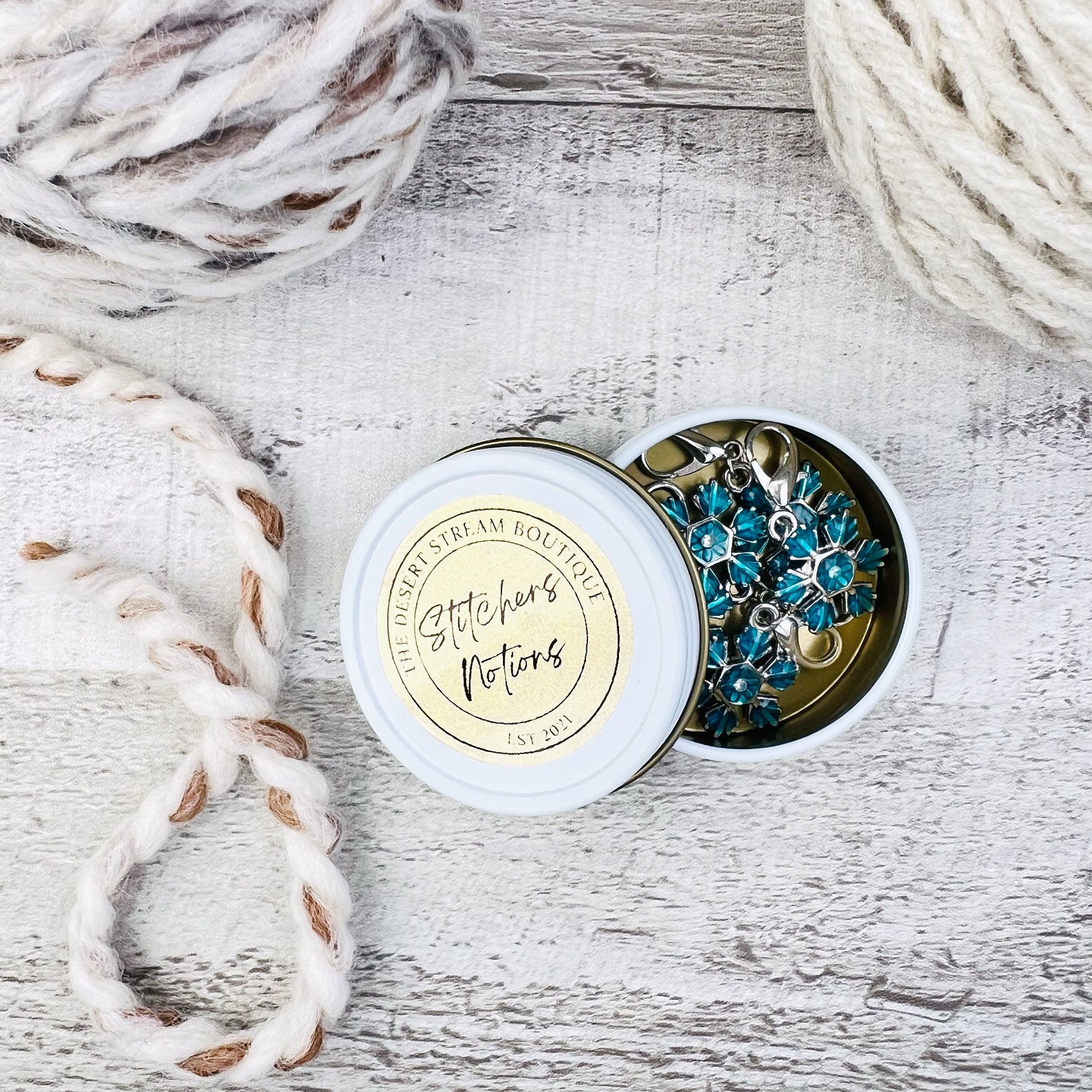 Snowflake Stitch Markers Set for knitting and crochet. Stitch Markers are great, progress keepers. Our knitting Notions also make a gift for any Stitcher.